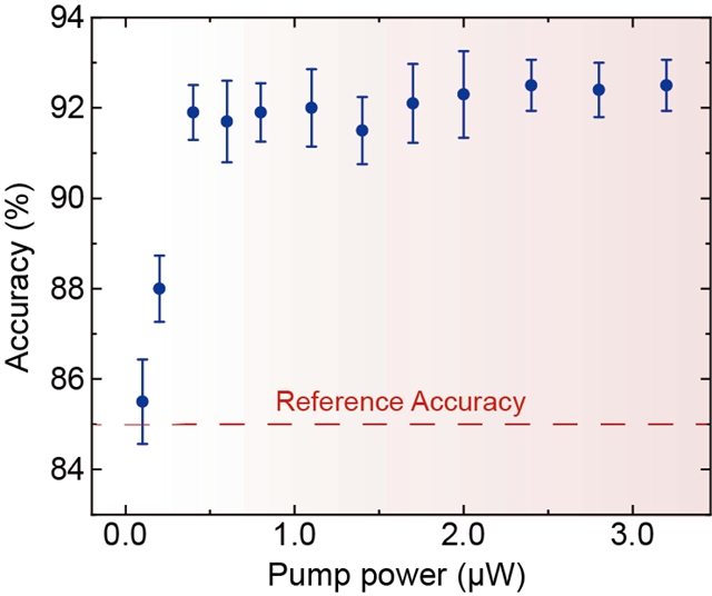 图3:不同激发功率下激子极化激元神经形态计算的识别正确率