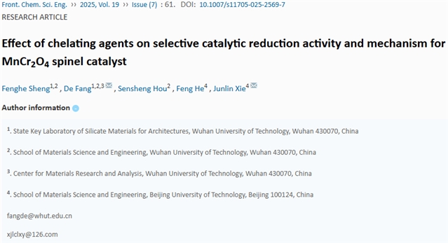 FCSE 前沿研究:螯合剂对MnCr2O4尖晶石催化剂选择性催化还原活性的影响及机制。论文标题:Effect of chelating agents on selective catalytic reduction activity and mechanism for MnCr2O4 spinel catalyst