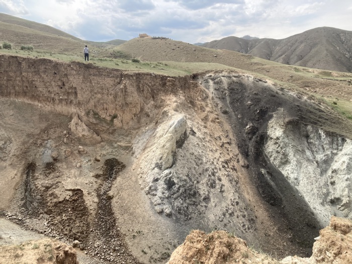 许文斌在甘肃观察海原断裂带老虎山断层。受访者 供图