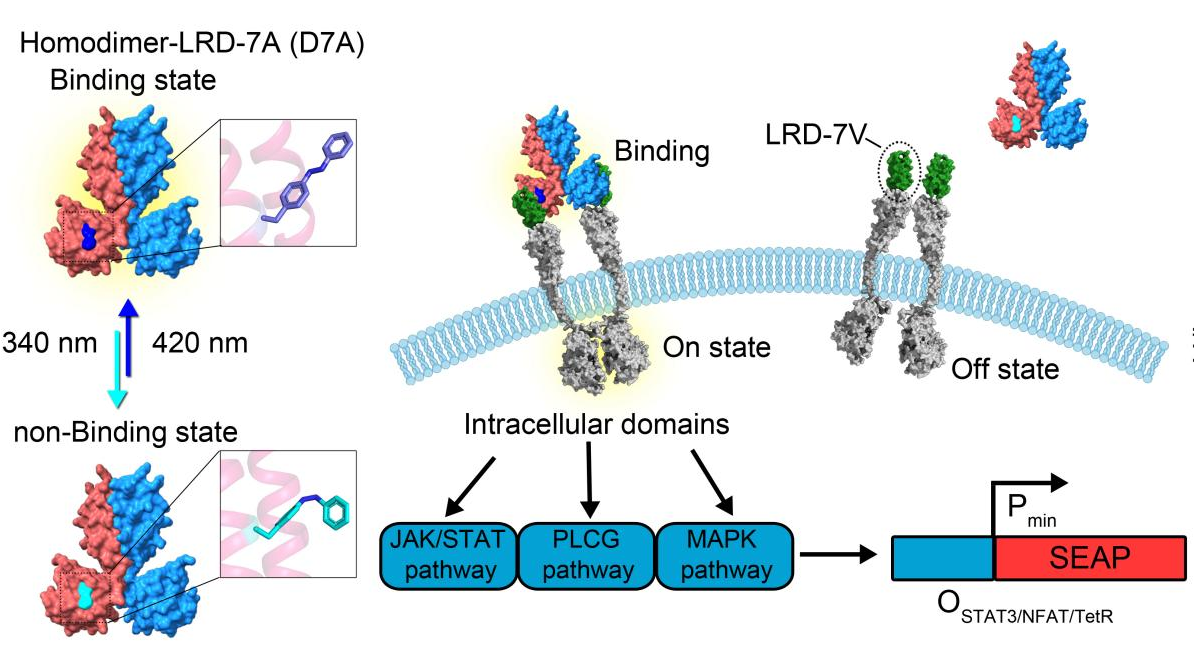 图2:光响应受体-配体对激活细胞信号通路示意图。