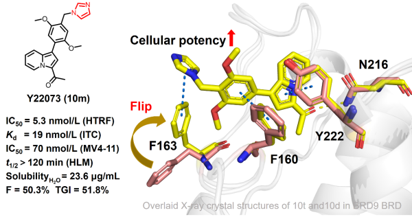 Y22073具有优异的体外活性、体内疗效和成药性特征,可作为具有First-in-Class潜力的BRD9溴结构域选择性抑制剂,为急性髓系白血病的靶向治疗提供具有临床转化价值的新型候选药物。