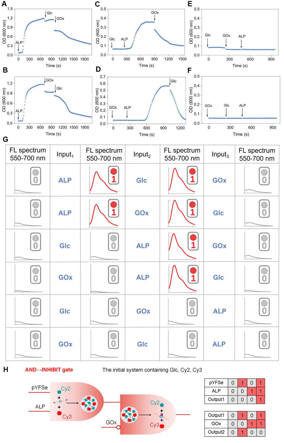 图6:生化信号输入调控的可编程信号通路和逻辑门。