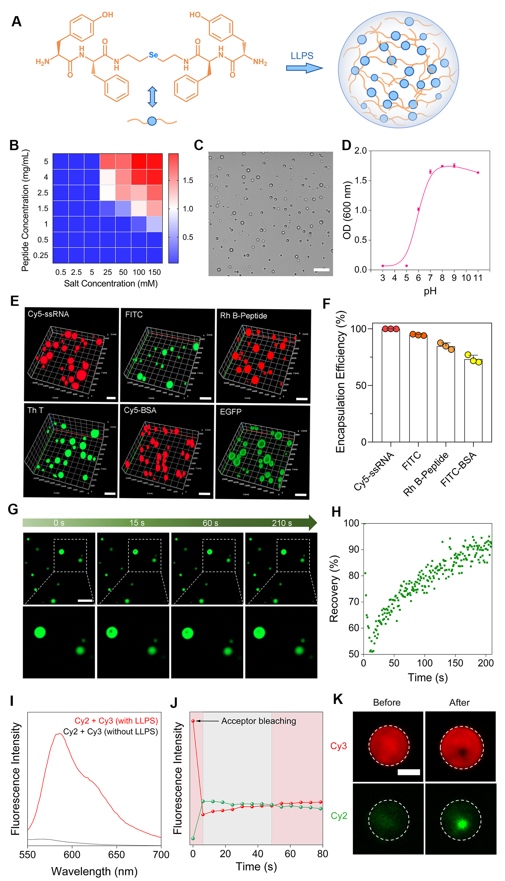 图2:多肽YFSe相分离形成凝聚体的研究。