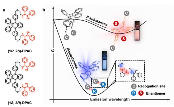 科学家开发系列具有手性识别特性的功能染料。 华东理工大学化学与分子工程学院田禾院士、马骧教授团队设计并开发了系列具有手性识别特性的功能染料,为手性传感中先进光学材料开发提供了新启示,也为可视化手性识别开辟了新途径。相关研究近日发表于《自然-通讯》。
