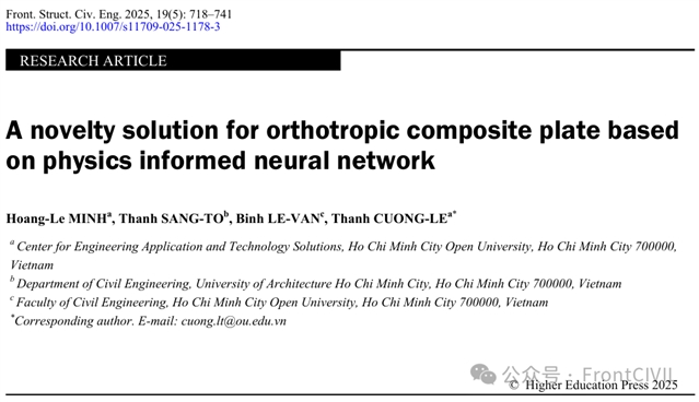 Hoang-Le MINH, Thanh SANG-TO, Binh LE-VAN, Thanh CUONG-LE. A novelty solution for orthotropic composite plate based on physics informed neural network. Front. Struct. Civ. Eng., 2025, 19(5): 718–741 https://doi.org/10.1007/s11709-025-1178-3