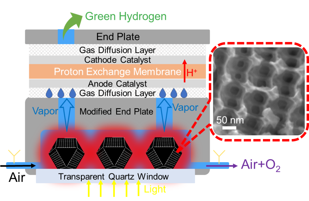 基于有序多孔碳的光热空气集水-质子交换膜电解水自驱动系统。课题组供图