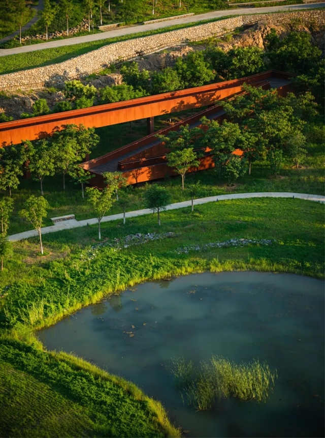 2015年随着北京市清洁空气行动计划的实施,工厂正式关停,其周边逐渐形成国家科技园区、高等院校、住宅社区和旅游目的地的集聚区。基于这一区位变迁,本项目旨在通过生态修复将场地转型为国家科研园区与乡村公园。修复后的景观将融合多功能公共空间,包括登山步道、露天剧场和艺术装置等,兼具生态价值与游憩功能。