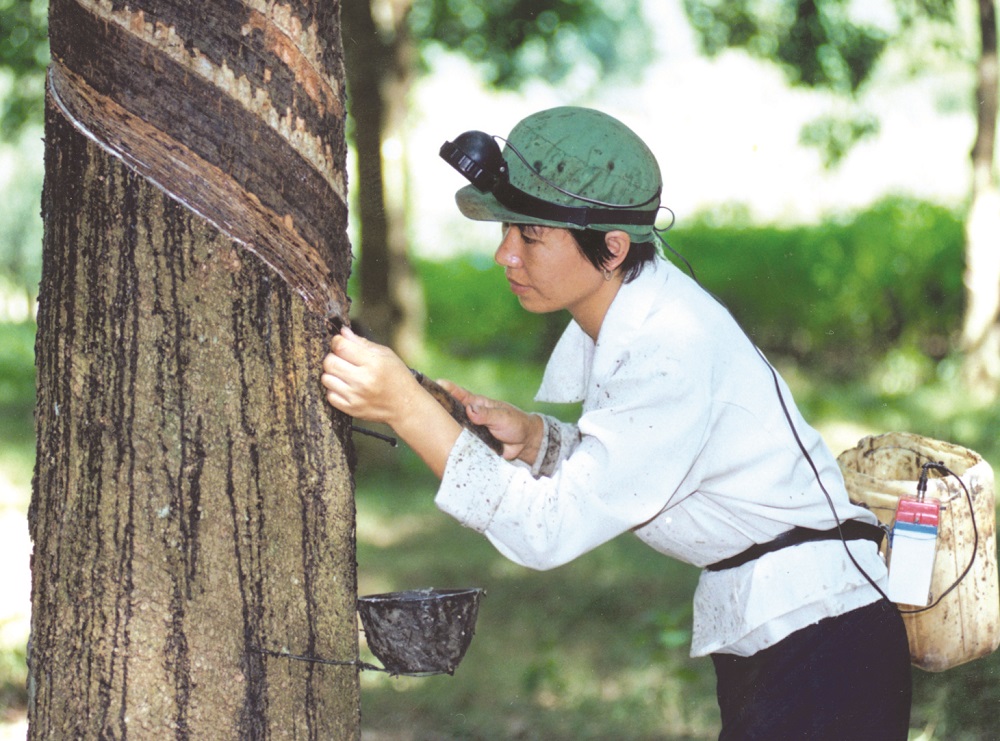 上世纪90年代,割胶工人正在采胶。中国热科院供图