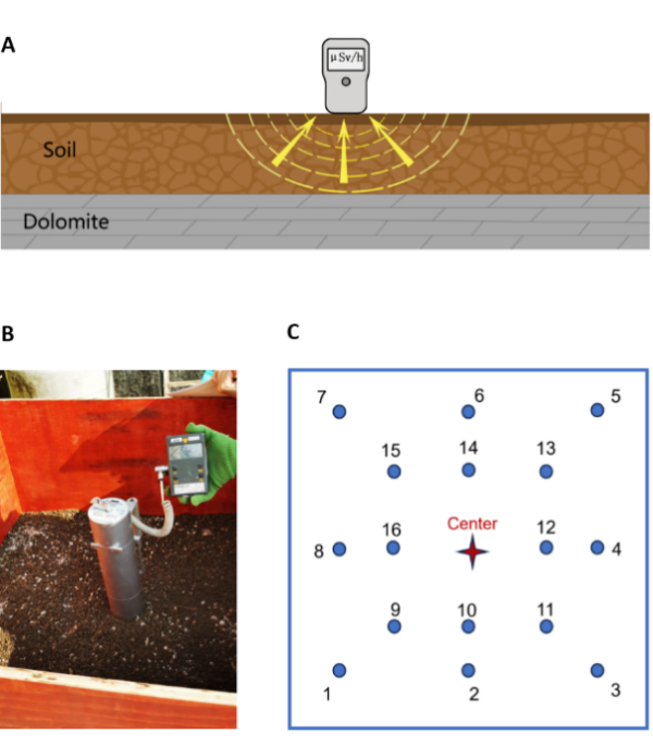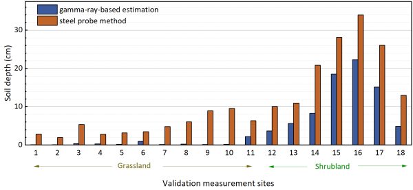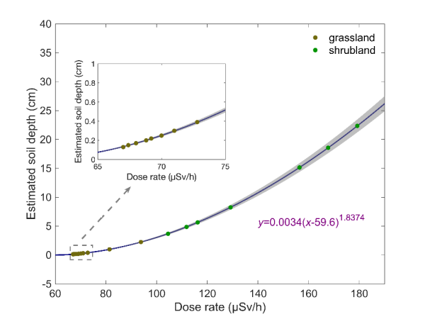 测量草地和灌木地的辐射剂量率和估算的土层厚度