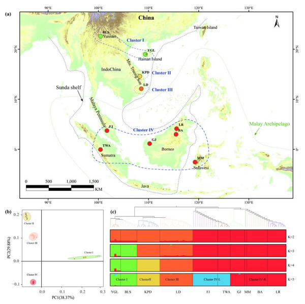 研究结果显示,轮叶三棱栎起源于北巽他古陆,并在渐新世-中新世期间逐渐扩散至中国云南、海南,以及马来群岛的其他区域。由于巽他古陆海侵海退影响,马来群岛群体经历了严重的历史瓶颈,造成长期低遗传多样性。相比之下,中南半岛的地形异质性和居群间的基因流维持了居群高遗传多样性。自末次盛冰期以来,婆罗洲始终具备适宜轮叶三棱栎生存的环境条件,预计在未来气候变化背景下,仍将继续发挥“避难所”的作用。