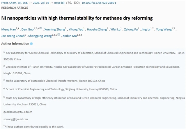 Meng Han, Dan Guo, Xuening Zhang, Yitong Yao, Haozhe Zhang, Yifei Lu, Zelong Fu, Jing Lv, Yong Wang, Joe Yeang Cheah, Shengping Wang, Xinbin Ma. Ni nanoparticles with high thermal stability for methane dry reforming. Front. Chem. Sci. Eng., 2025, 19(8): 70 https://doi.org/10.1007/s11705-025-2580-z