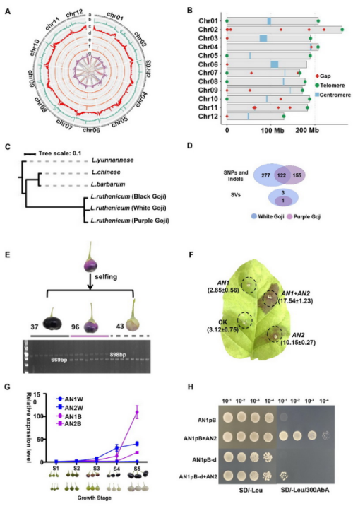 黑果枸杞基因组解析及果实颜色分化研究取得进展。黑果枸杞(Lycium ruthenicum)是青藏高原特有的药用植物,果实富含花青素,具有抗氧化活性。自然群体中同时存在黑果、白果和紫果等不同果色类型,其遗传关系及果实颜色分化的分子机制长期缺乏基因组水平的解析。