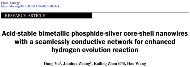 Hang Yu, Jianhua Zhang, Kailing Zhou, Hao Wang. Acid-stable bimetallic phosphide-silver core-shell nanowires with a seamlessly conductive network for enhanced hydrogen evolution reaction. Front. Energy, https://doi.org/10.1007/s11708-025-1023-3