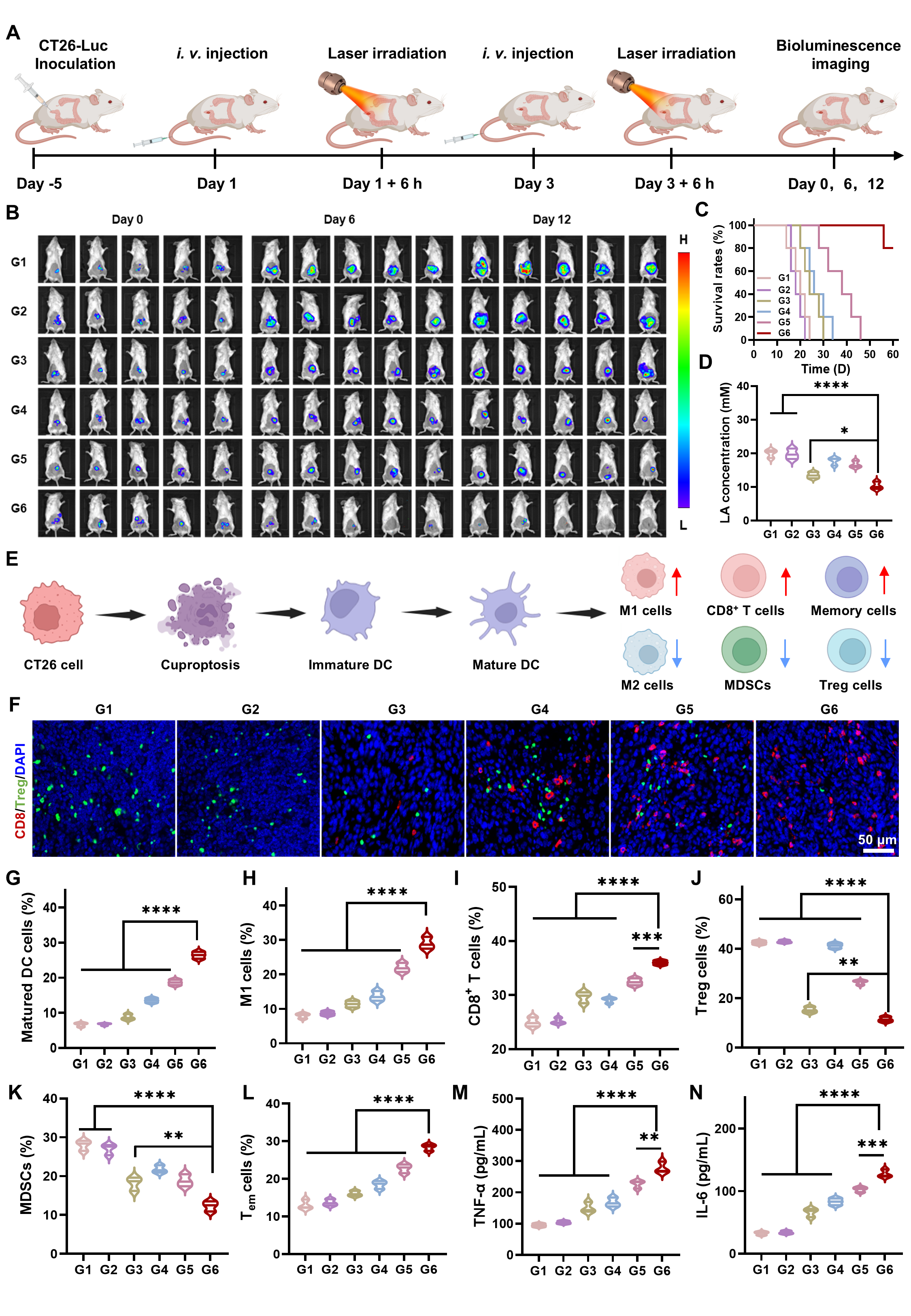 图2:乳酸与铜死亡相关指标的生信分析与纳米机器人的制备以及性能表征。