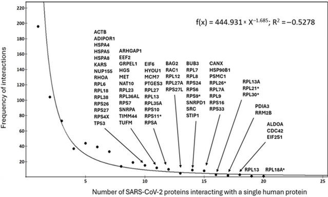 图3 与单个人类蛋白质相互作用的病毒蛋白质的分布
