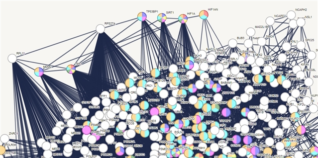 单个人类蛋白质与多种病毒蛋白质的相互作用及其分布图