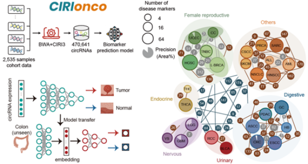 CIRI3是可在TB级人群队列转录组数据中高效检测和精确定量环形RNA的工具;CIRIonco数据库为癌症相关环形RNA的研究与功能探索提供了AI-ready数据集与计算模型,并为环形RNA在癌症分型和精准诊断中的应用提供了方法学工具和数据基础。
