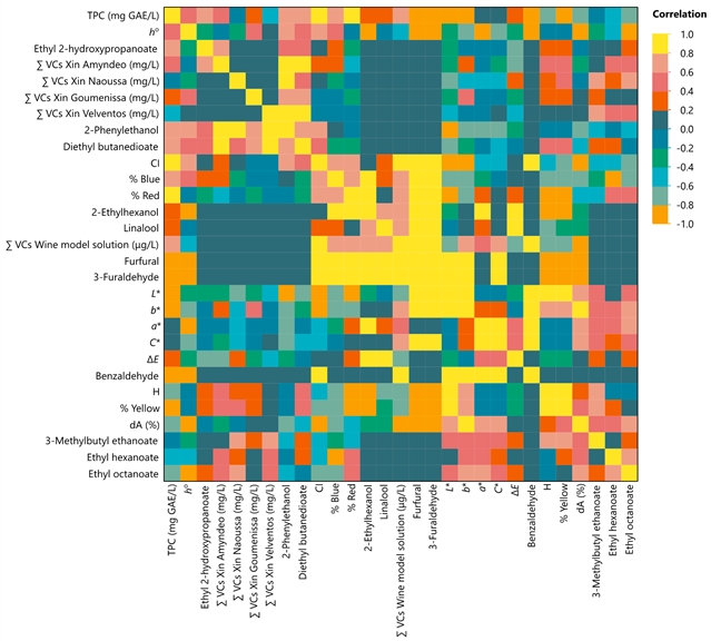 图 2. 所有葡萄酒样本中测量变量的多元相关性分析。