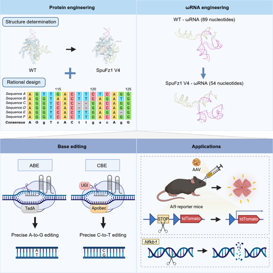 Cas9/Cas12因体积大难被单AAV装载。Fanzor作为真核生物中的RNA引导DNA内切酶,因尺寸小,被视为突破体内递送瓶颈的潜在“利器”,但其长期受困于哺乳动物细胞内的编辑活性与稳定性不足。