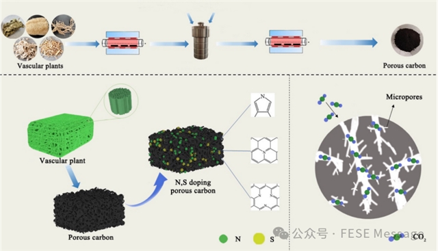 FESE快读 维管束衍生的有序分级多孔碳用于高效选择性CO2捕获。论文标题:Ordered hierarchical porous carbon derived from vascular bundles for efficient and selective CO2 capture
