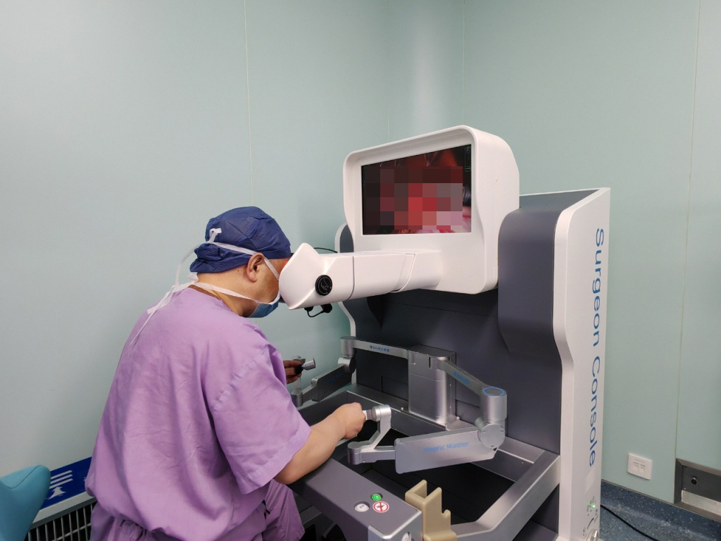 医生操控国产机器人为患儿进行手术。上海交通大学医学院附属上海儿童医学中心供图