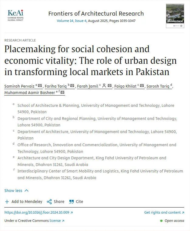FoAR 服务于社会凝聚力与经济活力的场所营造:城市设计在巴基斯坦地方市场改造中的作用。论文标题:Placemaking for social cohesion and economic vitality: The role of urban design in transforming local markets in Pakistan
