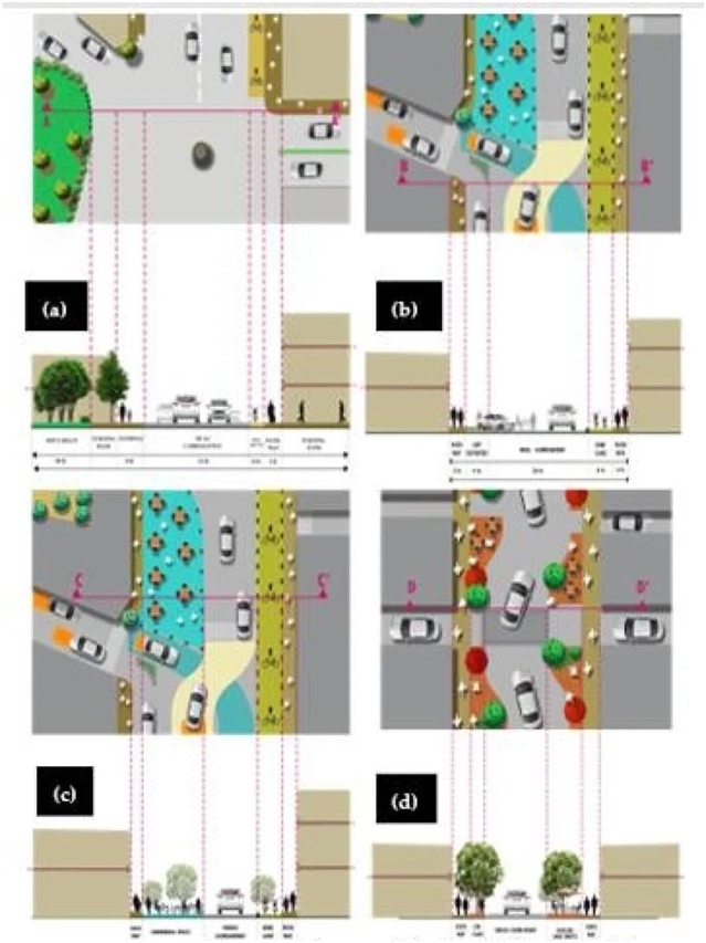 ▲ 图五:建议的剖面布置:(a) AA;(b) BB;(c) CC;(d) DD。©本文作者