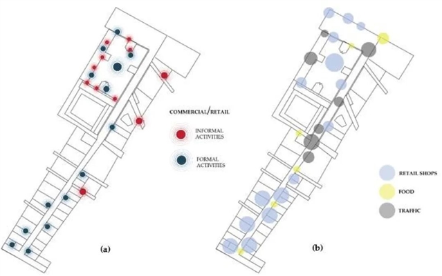 ▲ 图三:热点分析:(a) 非正式与正式商业活动;(b) 商业用途。©本文作者
