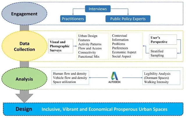 在规划与设计领域,场所(place)概念始终具有基础性地位。当前的发展趋势表明,人们更加注重通过改变空间的 体验感(experience)与 氛围感(feeling)来影响并改善社区活力,这一点在地方商业中心及市场空间中尤为突出 —— 此类空间对城市经济增长发挥着重要作用。本研究聚焦 场所营造(placemaking)的重要意义。作为设计领域的关键组成部分,场所营造 不仅能够推动市场内经济活动的开展,同时也有助于打造促进社会交往(social engagement)与凝聚社会力量的空间载体。研究采用混合研究方法,旨在强化城市区域内 场所营造 与地方非正规经济之间的关联。通过案例研究,本研究明确了一套 场所营造 原则,该原则可推动地方商业区域转变为社会凝聚力更强、功能更多元、活力更充沛的公共空间。研究建议,这项基于设计的研究成果可为巴基斯坦地方及全国范围内的市场空间规划提供实践指导。