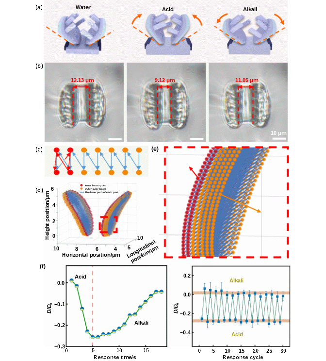 让我们来看看这个“快递员”的一天吧!想让它工作时,科研人员会先把它置于液体中。当周围环境的pH值发生变化时(如变酸或者变碱),微纳机器人的“手掌”就会像花朵一样张开或闭合。这就像我们的手遇到热水会自动缩回来一样,是一种聪明的应激反应。