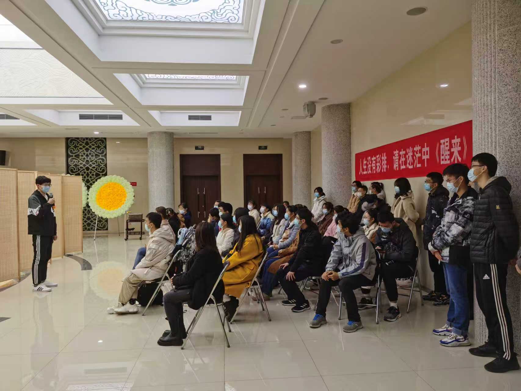 这是苏建和王云岭别出心裁设计的体验活动:《醒来》。当一个为生活奔波的中年人猝然离世,在遗体告别仪式上,由学生扮演的“逝者”、亲友、送行者等角色都会想些什么:是壮年离世的惋惜?未竟事业的遗憾?人生虚度的懊恼?还是被抛下的一家老少的哀痛?